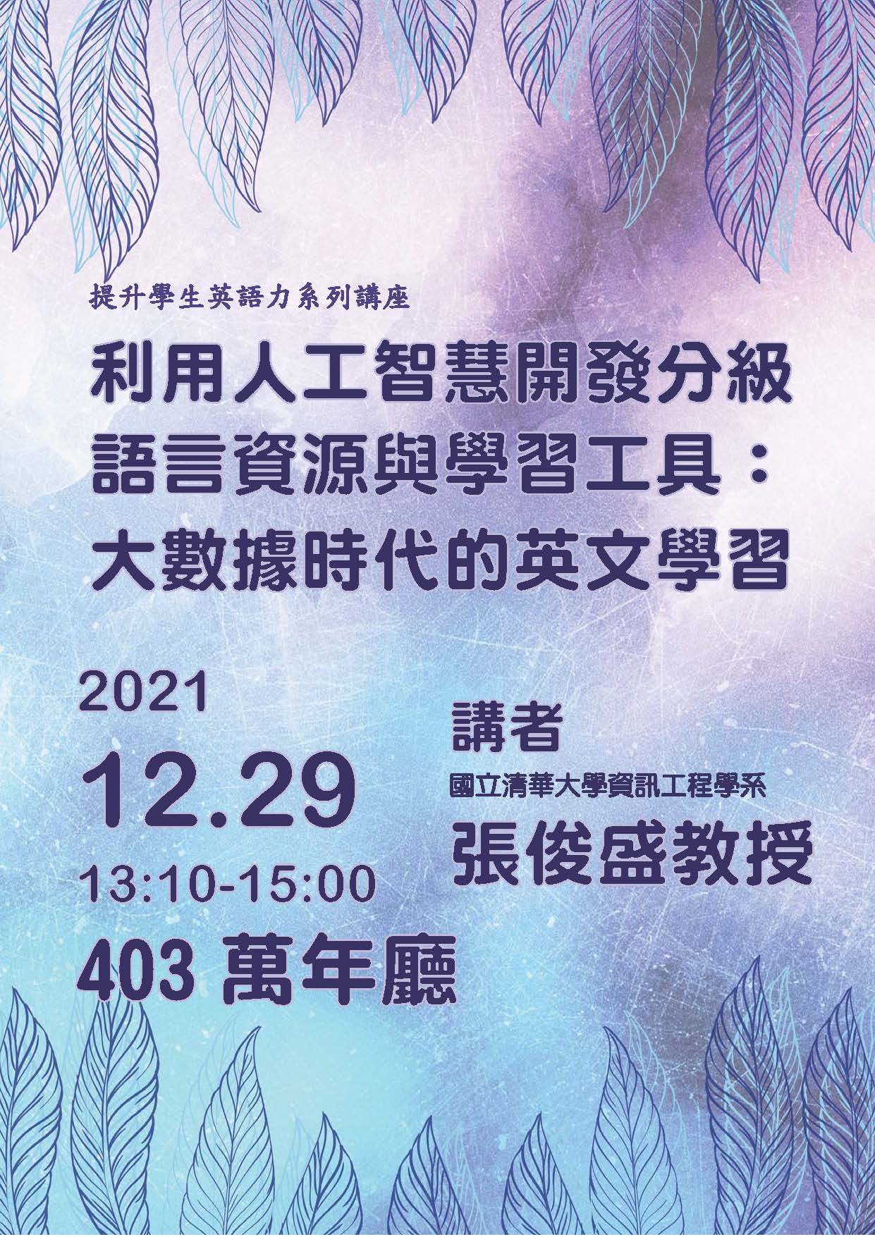 張俊盛教授蒞校演講 利用人工智慧開發分級語言資源與學習工具:大數據時代的英文學習